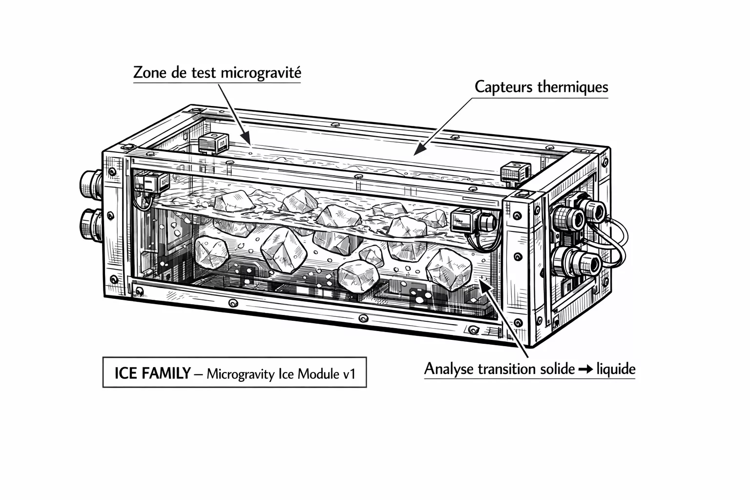 Le premier concerne la tenue structurelle des glaçons en apesanteur. En l’absence de gravité, la pression exercée sur la structure cristalline de la glace change. Ice Family veut savoir comment ses glaçons résistent — et si leur intégrité physique peut être maintenue dans ces conditions.